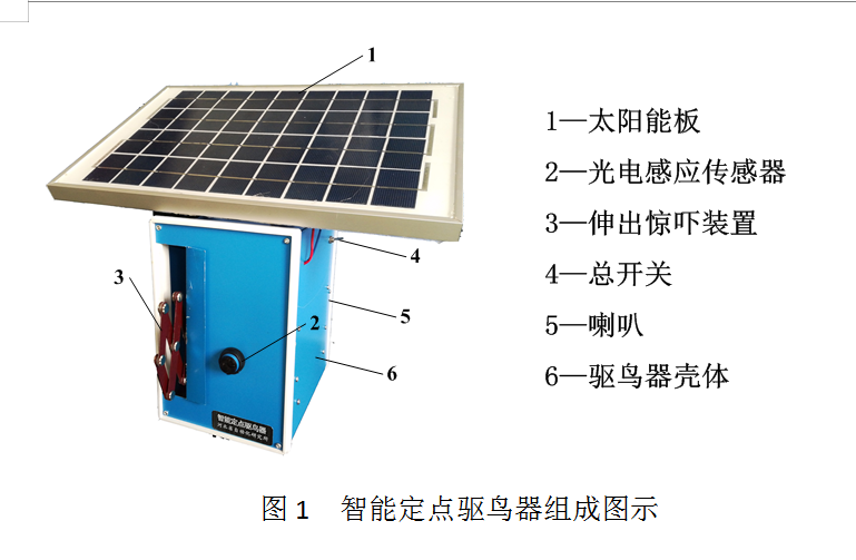 6、安裝完畢后使用時(shí),向下扳動圖1中的總開關(guān),打開驅(qū)鳥器,可以用手遮擋一次圖1中的光電感應(yīng)傳感器,測試驅(qū)鳥器功能是否正常。