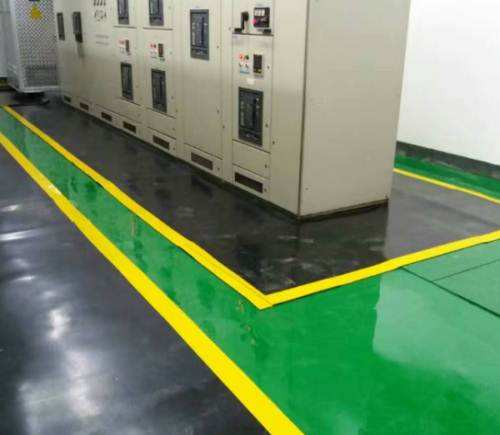 2、綠色配電間地面可以采用黑色絕緣膠墊,絕緣膠墊的邊緣可以使用絕緣膠帶固定,三種顏色惺惺相映,看起來(lái)既美觀又漂亮又干凈,如下圖所示