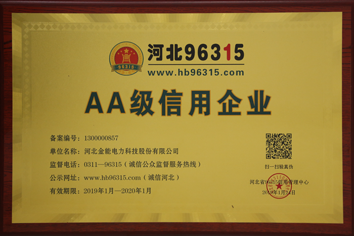 所以,此次金能電力獲得河北省96315信用管理中心頒發(fā)的“信用等級(jí)證”,可謂實(shí)至名歸!
